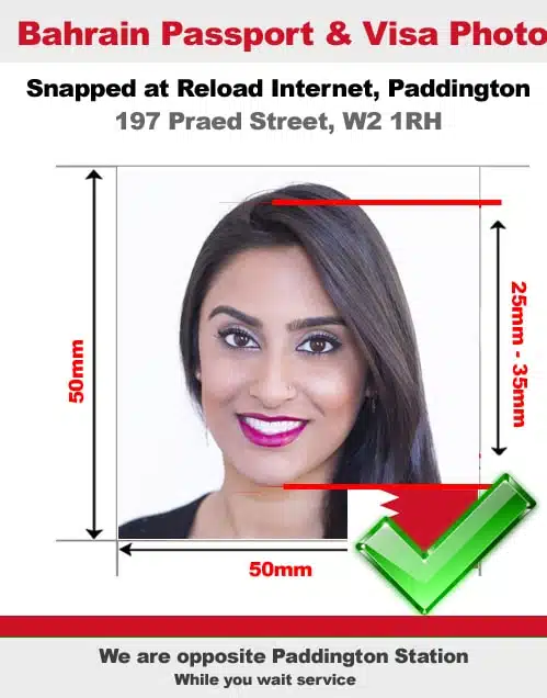 To ensure that you meet the Bahrain passport photo or visa photo requirements, you will need a set of high quality photos. When you use instant photo kiosks and similar methods, the quality of the photo is not sufficient enough to meet the standards of the Bahrain Embassy. Many customers have come to us after using such methods and being declined at the Bahrain Embassy, if your come to Reload Internet in Paddington we will make sure that your Bahrain passport or visa application does not fail due to an error with the photograph.